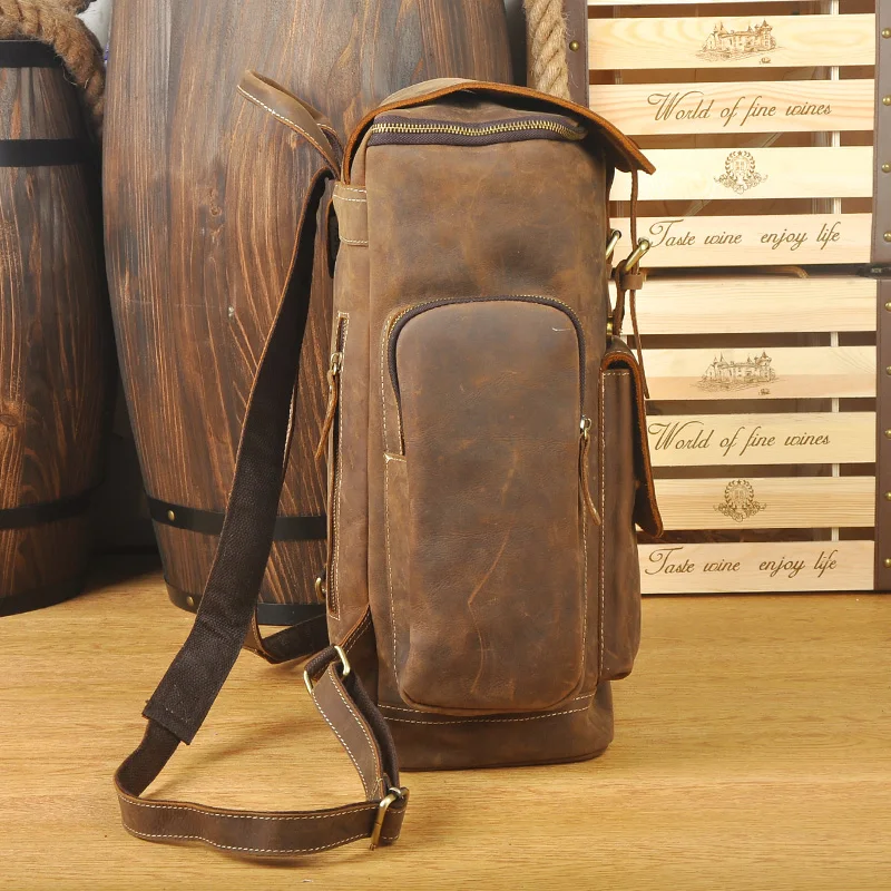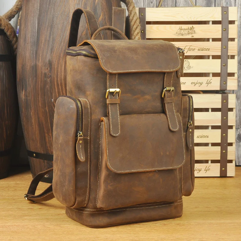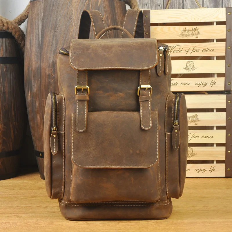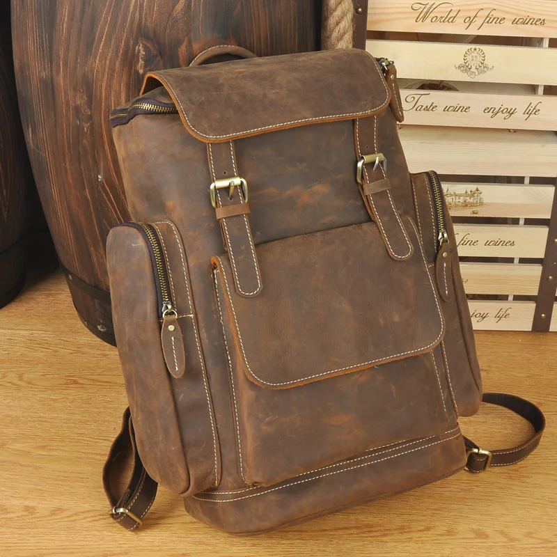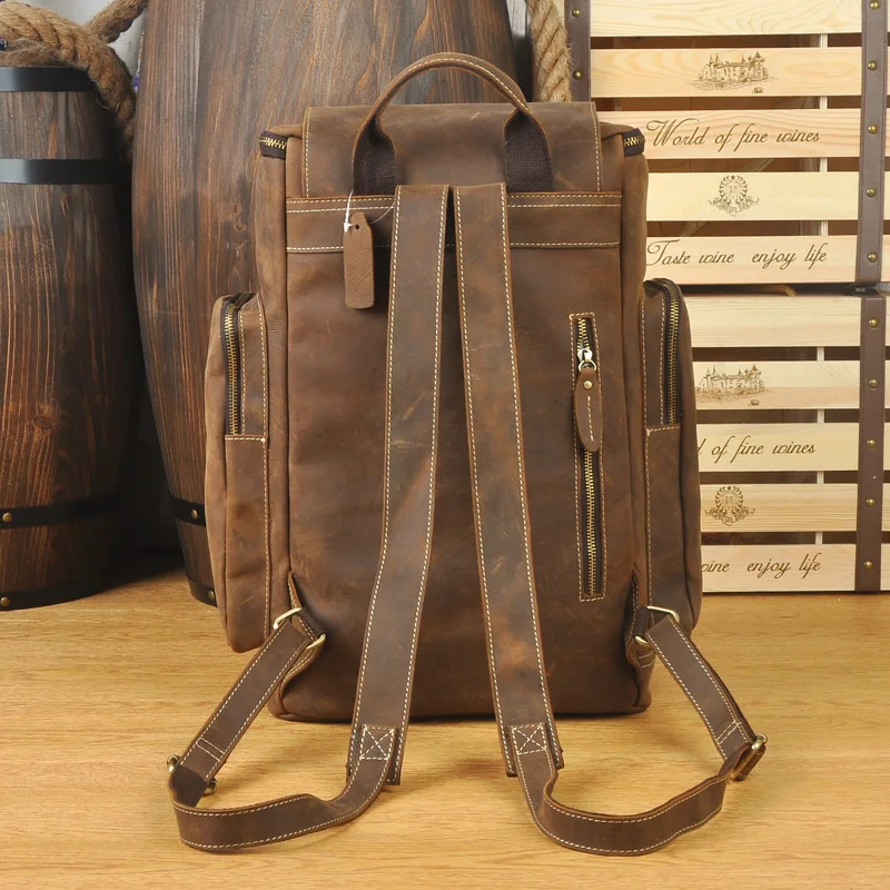 Brand Design Men Genuine Leather Backpack Crazy Horse Vintage Daypack Multi Pocket Casual Rucksack Vintage Handmade Tote :Click Here
