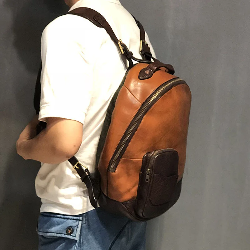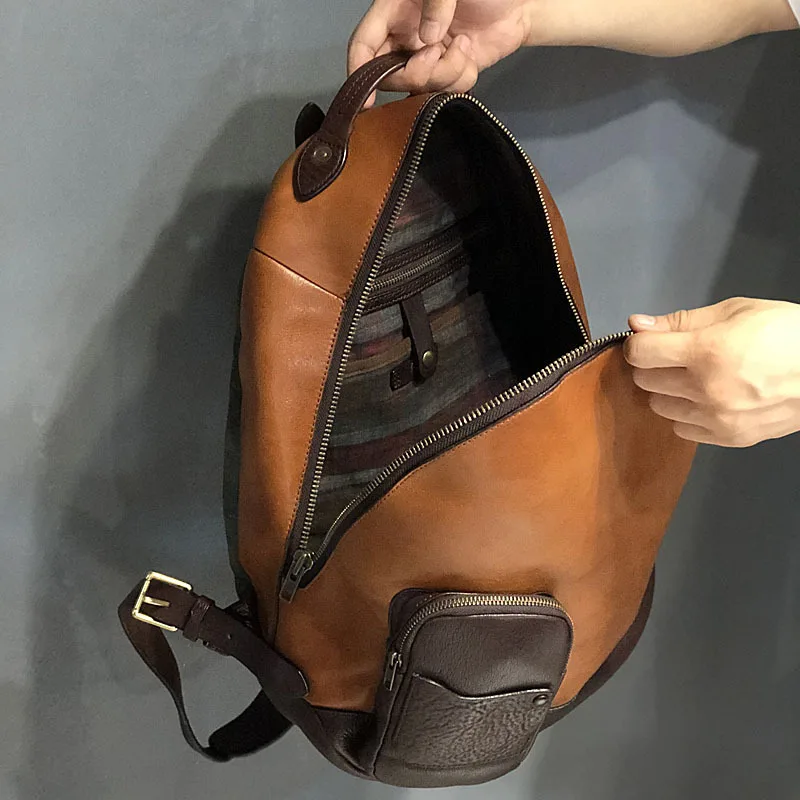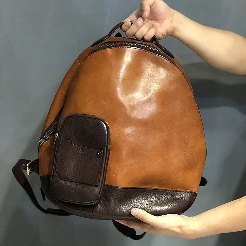 vintage leather men's backpack outdoor first layer cowhide backpack large capacity travel bag vegetable tanned leather backpacks :Click Here