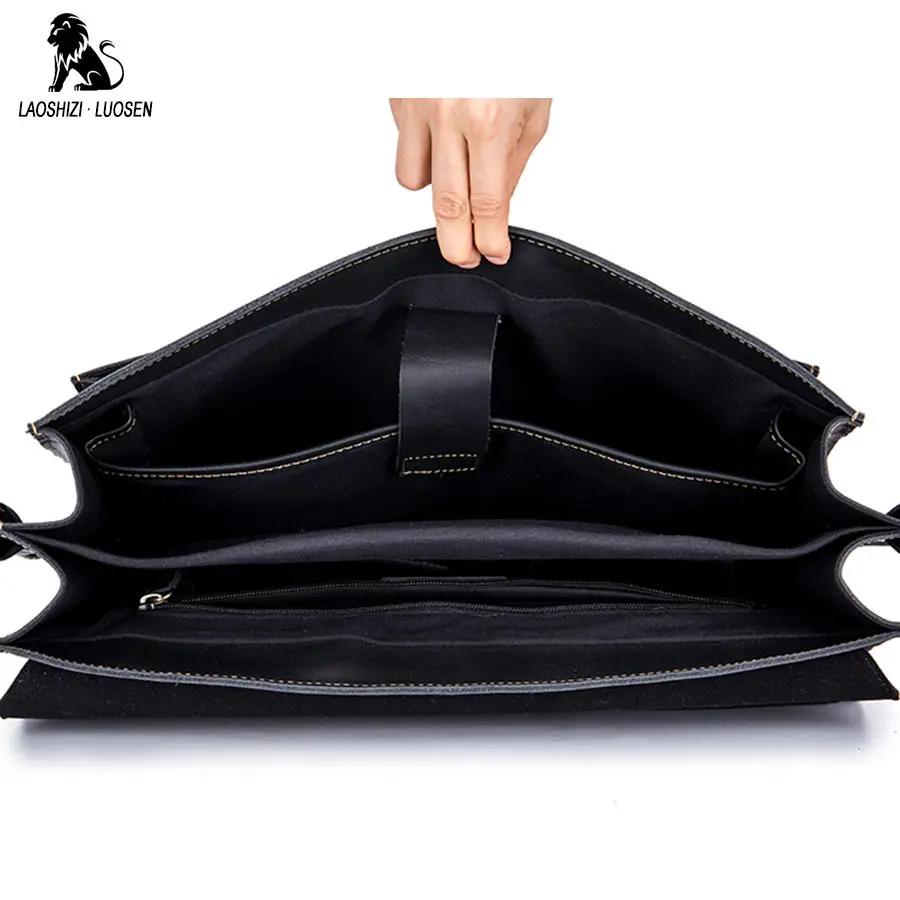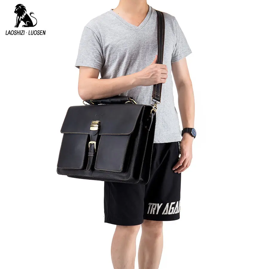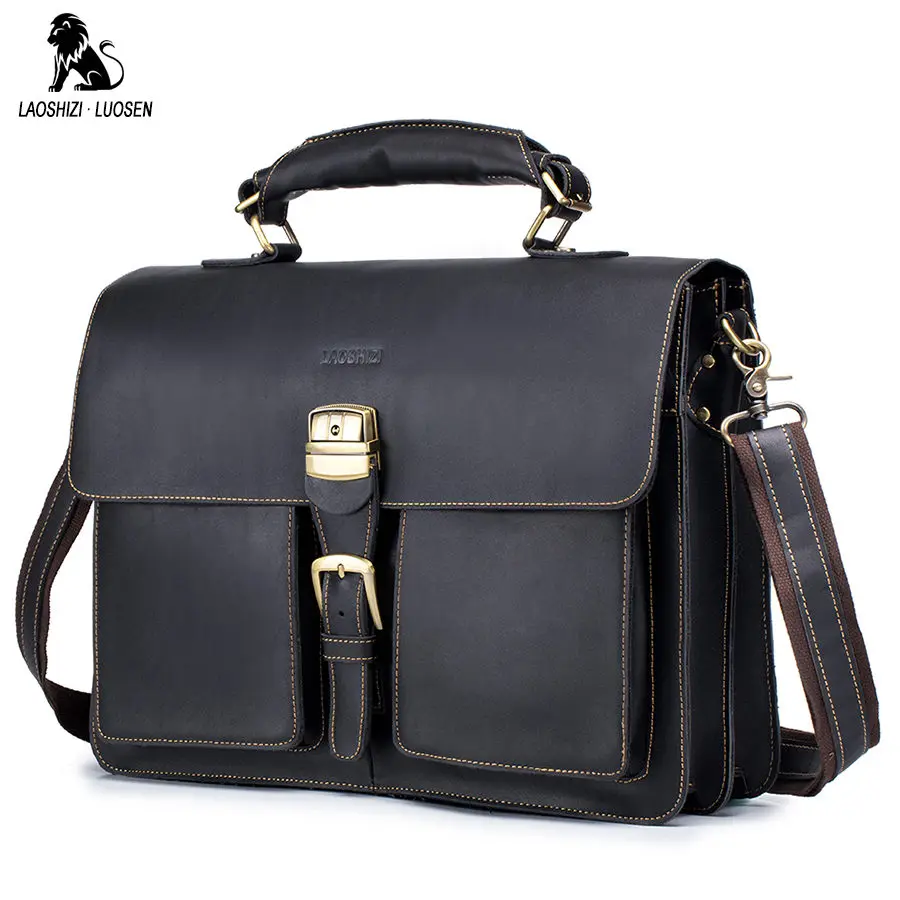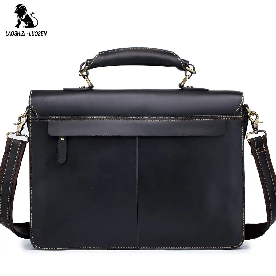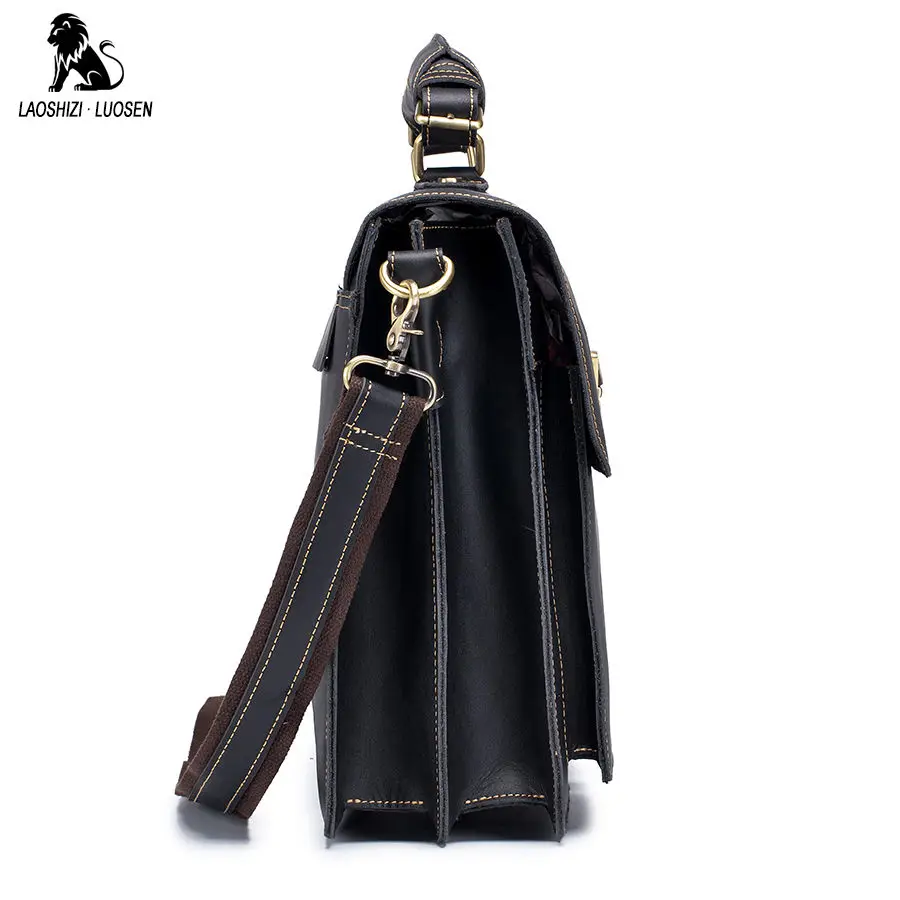 LAOSHIZI LUOSEN Men Briefcase Handbags Business bag Crazy Horse Genuine Leather portfolio men briefcase male laptop bag office :Click Here