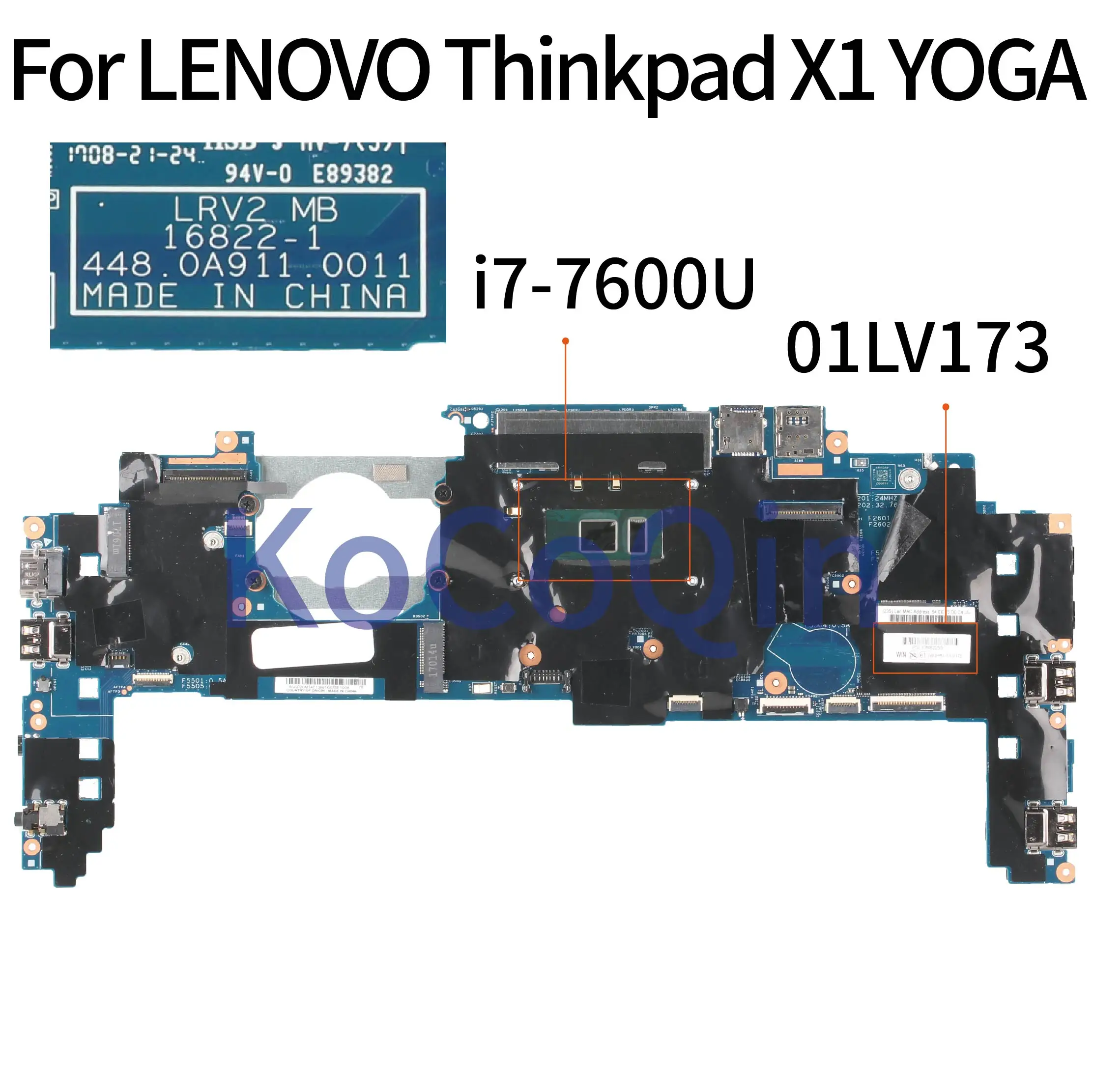 New KoCoQin laptop Motherboard For LENOVO Thinkpad X1 YOGA Core SR33Z i7-7600U 16GB Ram Mainboard 16822