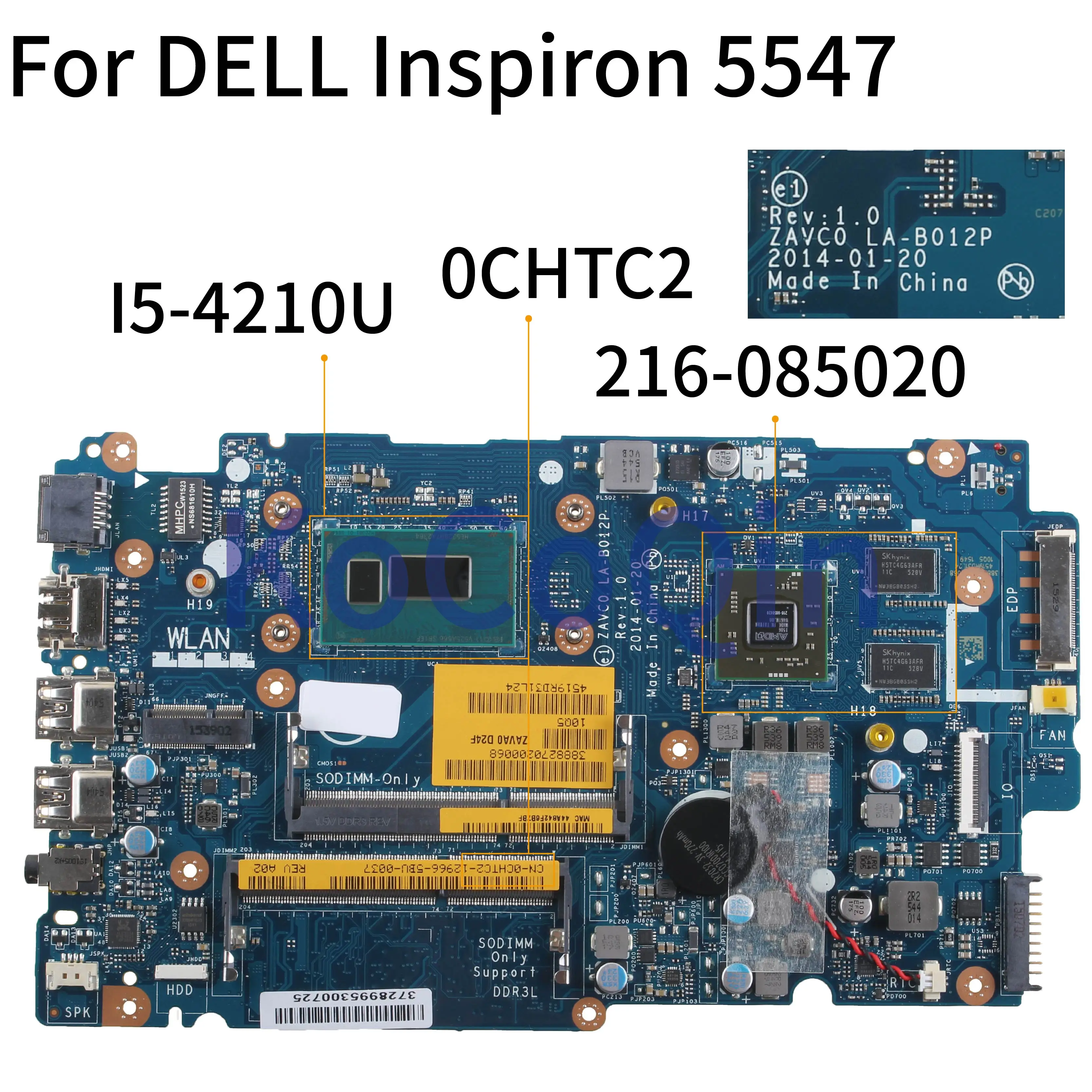 Popular KoCoQin Laptop motherboard For DELL Inspiron 5547 I5-4210U Mainboard CN-0CHTC2 0CHTC2 ZAVC0 LA-B012